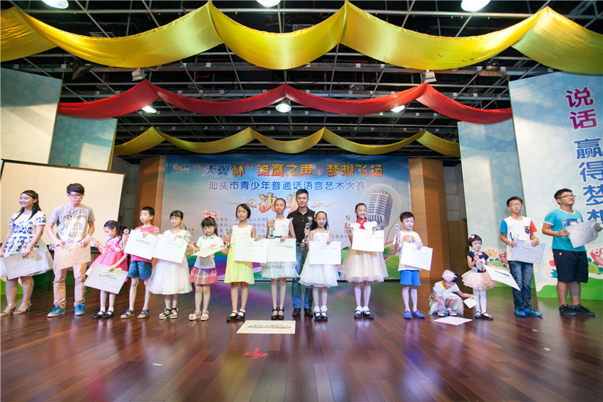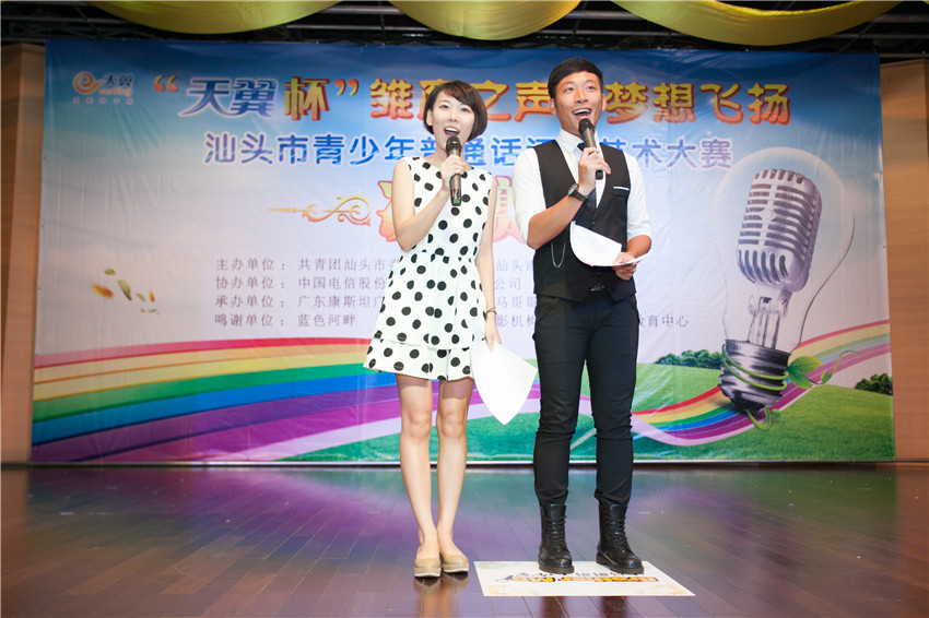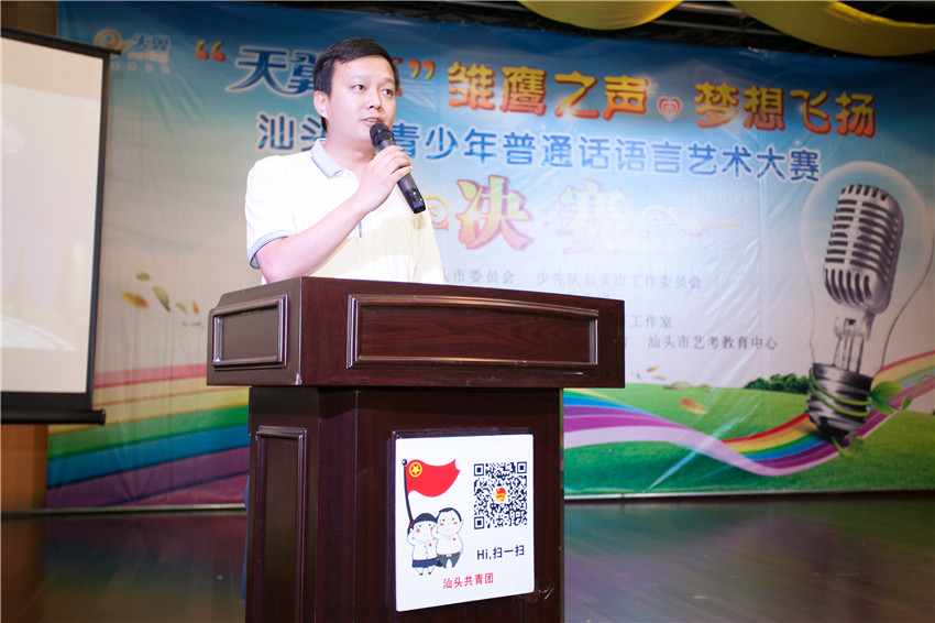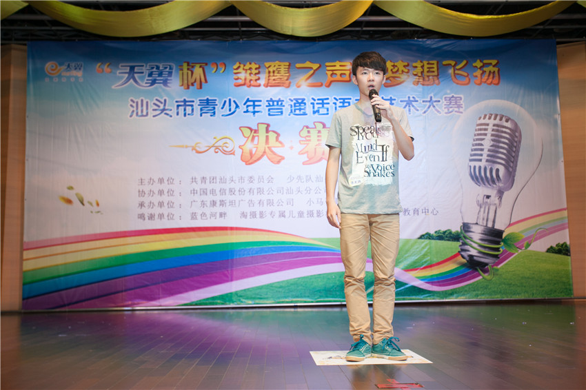 7月20日,“天翼杯”“雏鹰之声·梦想飞扬”汕头市青少年普通话语言艺术大赛决赛在林百欣图书馆二楼报告厅举行,决赛邀请汕头市电视台主持人马撼宇、刘麟、杜文和栗宇坤担任评委。决赛现场,选手们纷纷用美妙的背景音乐、丰富的肢体语言、亮丽通透的嗓音向台下的观众展示精湛的才艺,张扬青少年们无限的活力与梦想,为在场的观众们献上一场精彩纷呈的试听盛宴。
