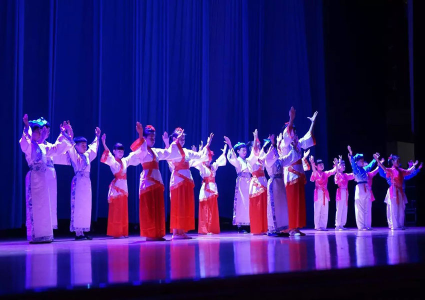 ▲演出由希言文化语言艺术中心的小朋友带来的情景诗朗诵《悯农、画鸡、陋室铭》拉开了序幕。