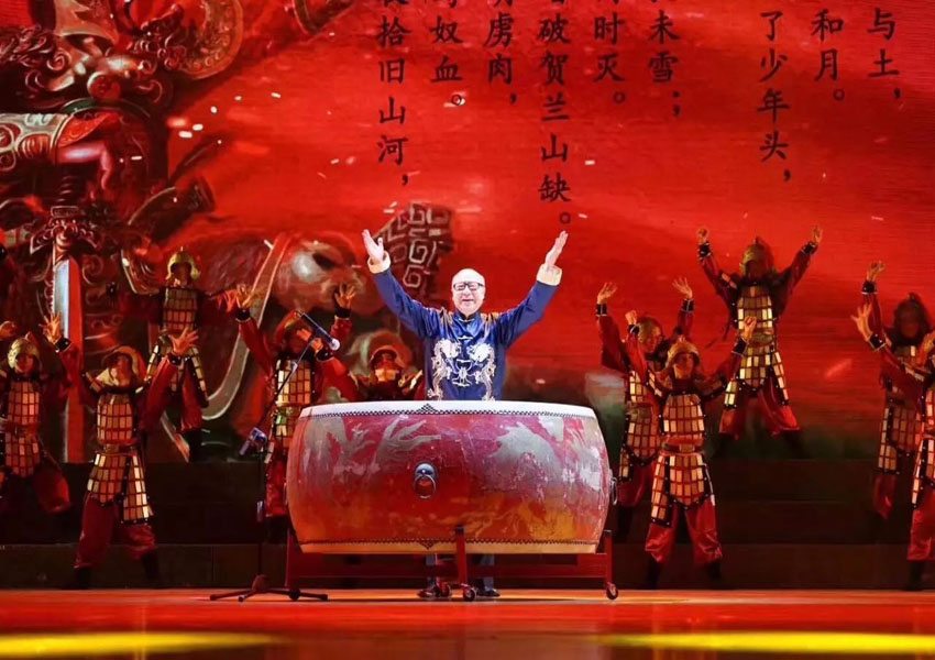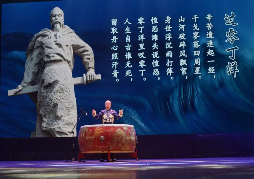 ▲国家一级演员、北京朗诵艺术团创始人殷之光老师击鼓诵诗,为汕头人民带来《满江红》与《过零丁洋》两首经典古代诗词,搭配着由潮汕李家教拳系传承中心30位演员的精彩表演,开篇就将现场气氛推向高潮。