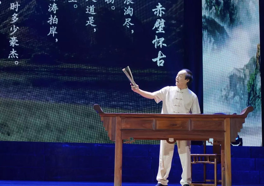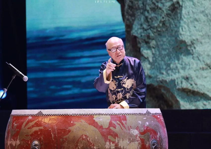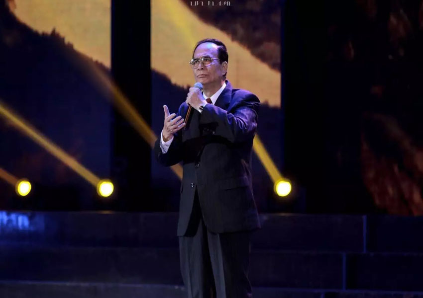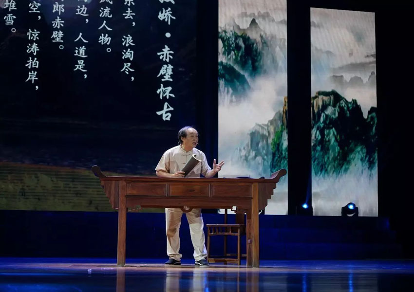 ▲全球汉诗总会常务副会长黄赞发老师用潮汕话演绎《念奴娇·赤壁怀古》,虽已临耄耋之年,但朗诵时依然意气风发。