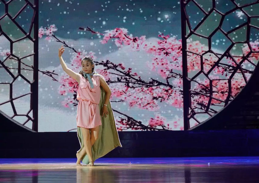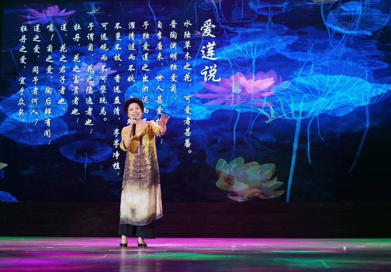 ▲国家一级演员、梅花奖、文华奖、金狮奖获得者杨青老师与舞蹈演员郑泽霞共同演绎《爱莲说》,真正诠释“可远观而不可亵玩焉”。