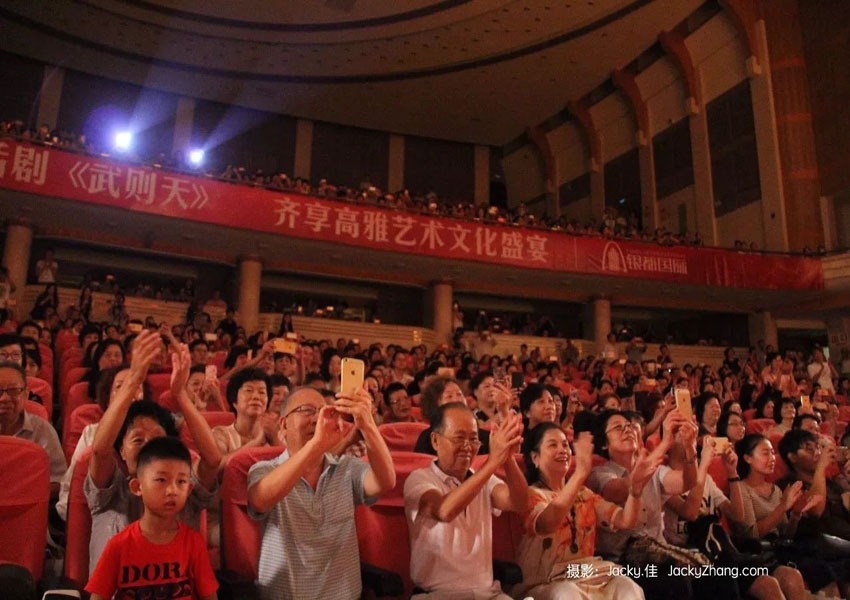接连两晚,为该剧增添了刘晓庆演绎的话剧版“武则天”征服全场观众,创新的台词打破了历史剧刻板的束缚,轻松愉快的快乐因子,让观众时不时用笑声接出历史剧的“地气儿”。恢弘大气、气势磅礴的舞台设计也得到了观众的一致称赞。原汁原味的高端话剧盛宴令现场观众陶醉其中,演员谢幕时,观众席掌声雷动、经久不息。